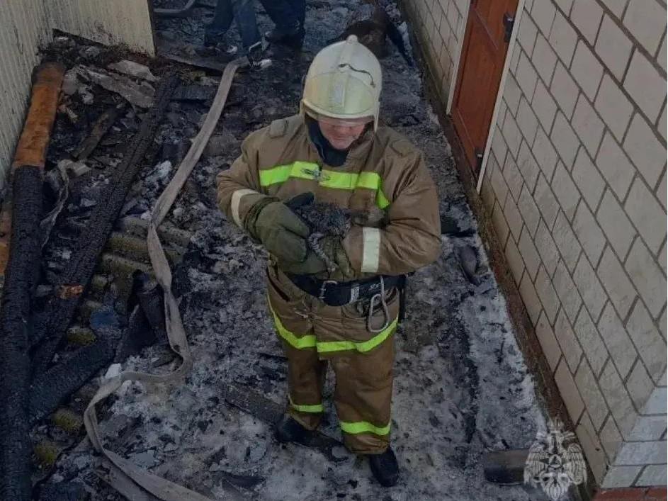 Животное обнаружили по жалобному мяуканью во время тушения пожара.
