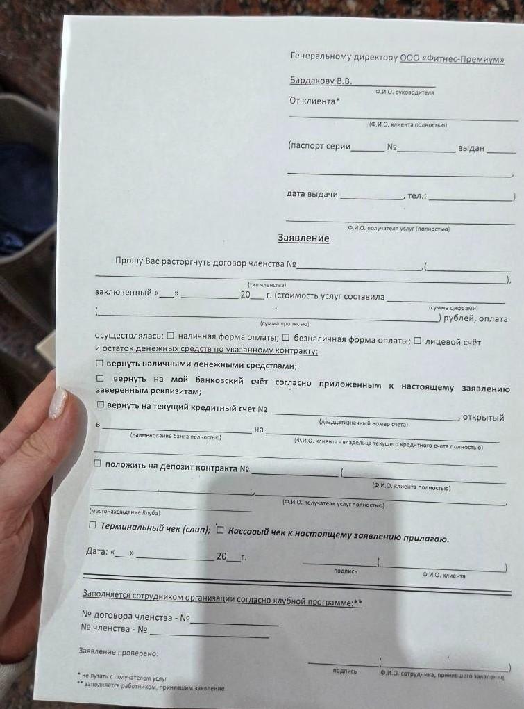 Бланки для расторжения договора и возврата средств выдаются по запросу клиентов.