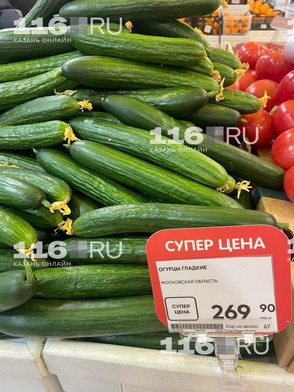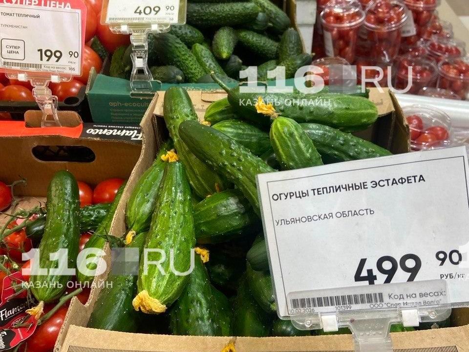 Фактические ценники в магазинах часто превышают официальные данные. В одном из казанских супермаркетов были обнаружены тепличные огурцы из Ульяновской области по 500 рублей за кило. Рядом предлагался более доступный вариант из Подмосковья за 270 рублей.