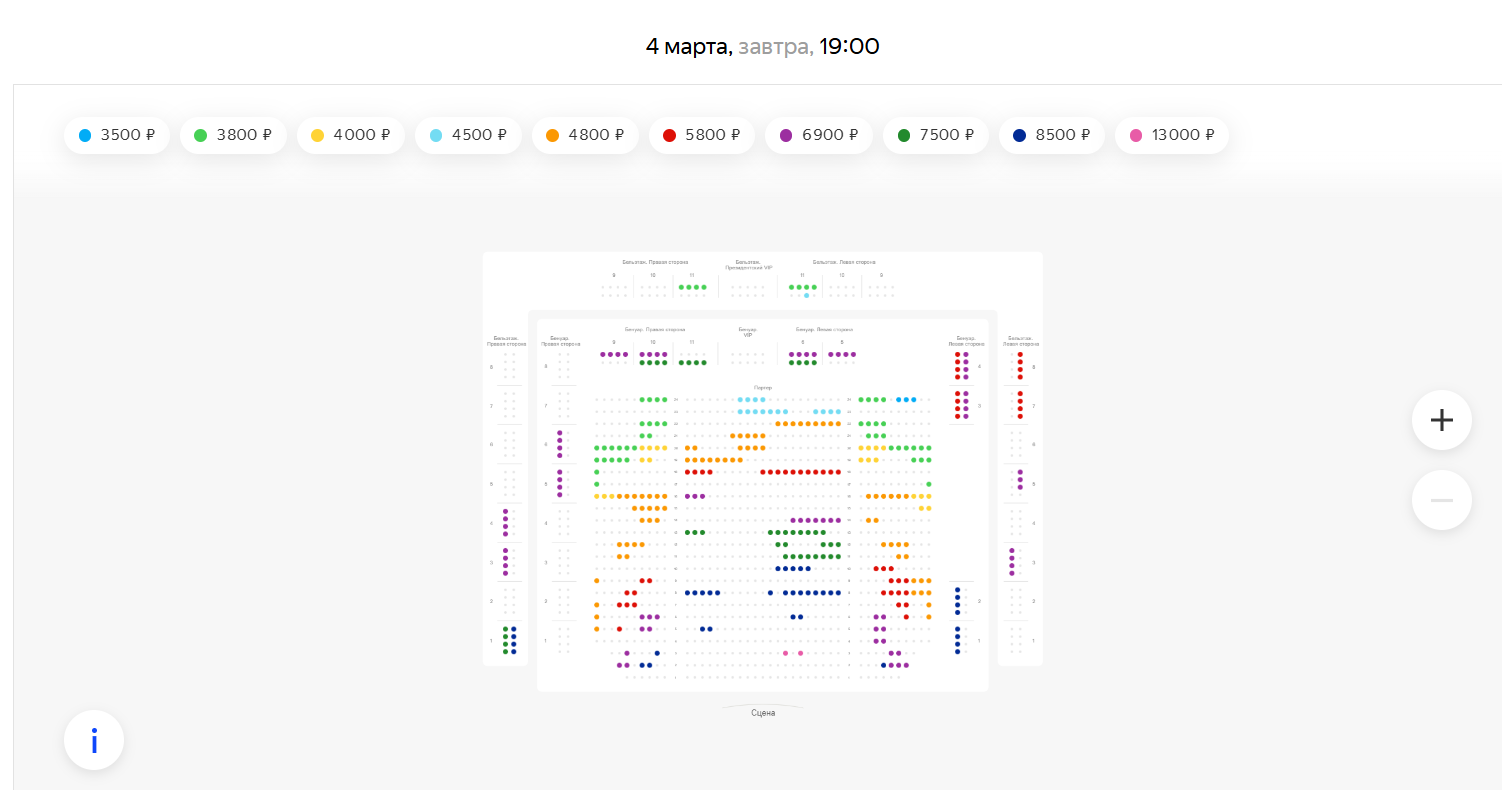 Стоимость билетов начинается от 3500 рублей и достигает 13000 рублей. Цена зависит от близости места к сцене. VIP-билеты, которые уже раскупили, давали право на посещение афтепати с фуршетом, фото с актером и афишу с автографом.
