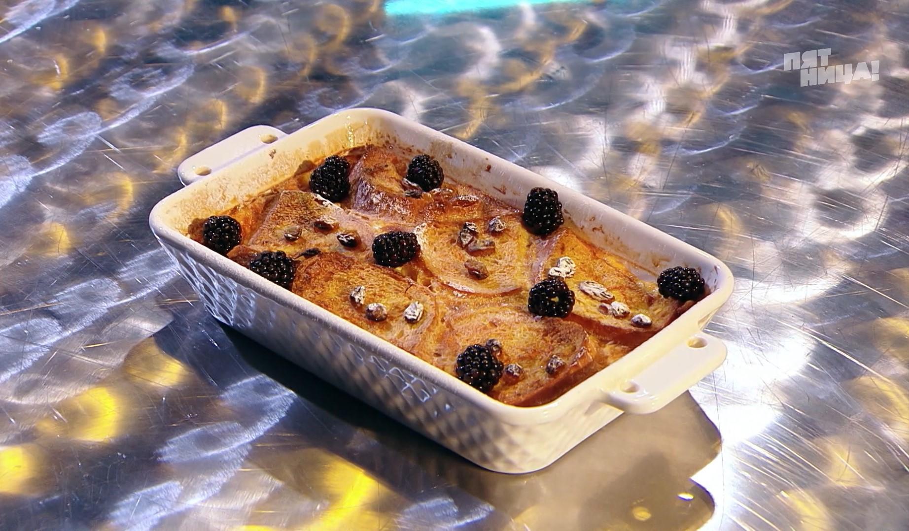 На следующем этапе Вероника представила английский хлебный пудинг, в то время как соперники из команды Агзамова работали над греческим пирогом тиропита. Её блюдо получило высокую оценку.