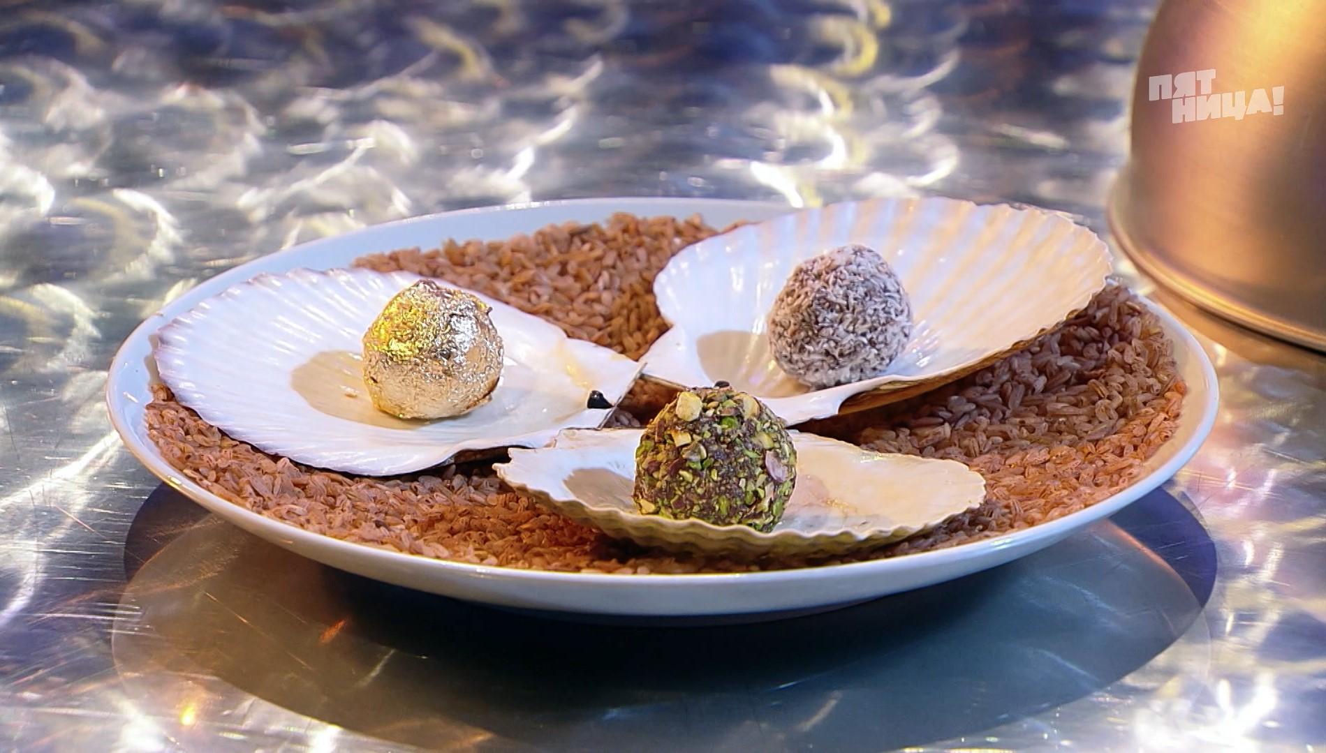 В финале участникам необходимо было создать фирменное блюдо из заданных продуктов. Вероника решила сделать конфеты в форме жемчужин, поданные в раковинах, но это не увенчалось успехом.
