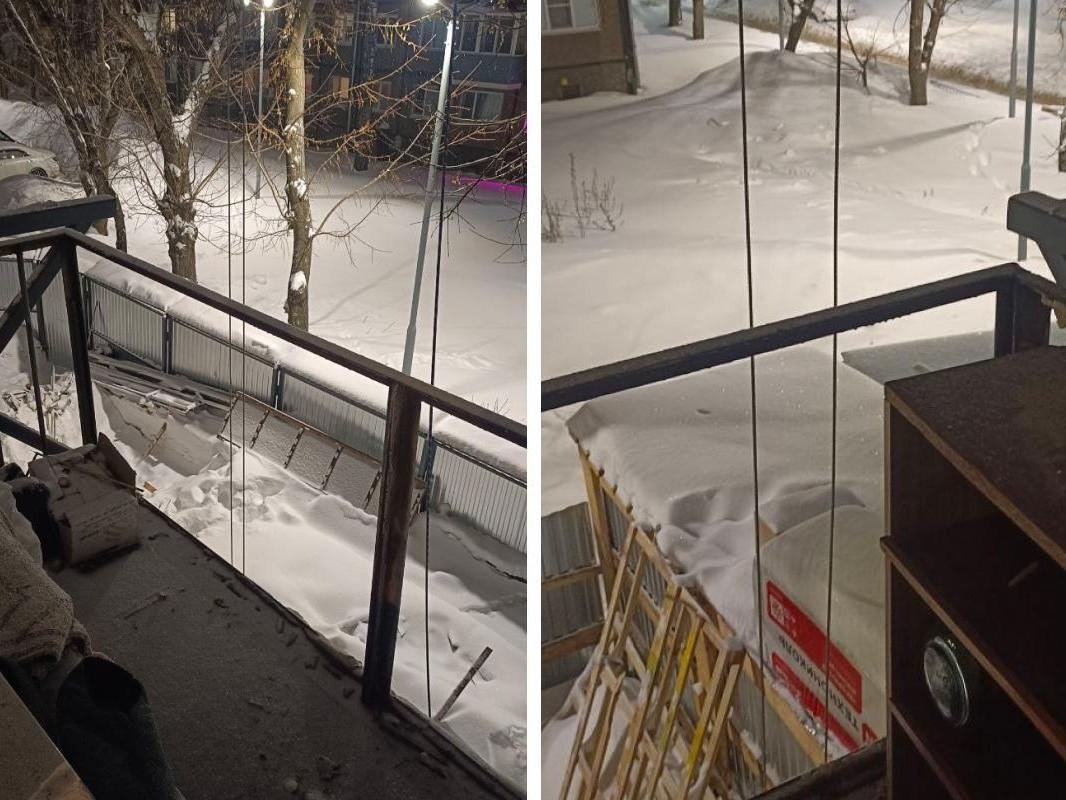 На опубликованных снимках виден балкон без ограждения и перил, а пол и предметы на нём покрыты снегом. По словам жительницы, она обратилась в мэрию с просьбой помочь в решении проблемы, но ответа пока не последовало.
