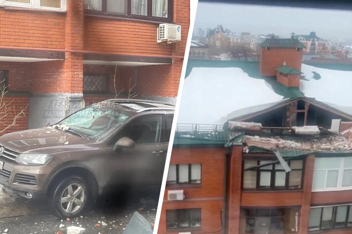 Конструкции чердака рухнули на припаркованную машину в центре Казани. Владелец автомобиля получил травмы, но МЧС опровергает наличие пострадавших.