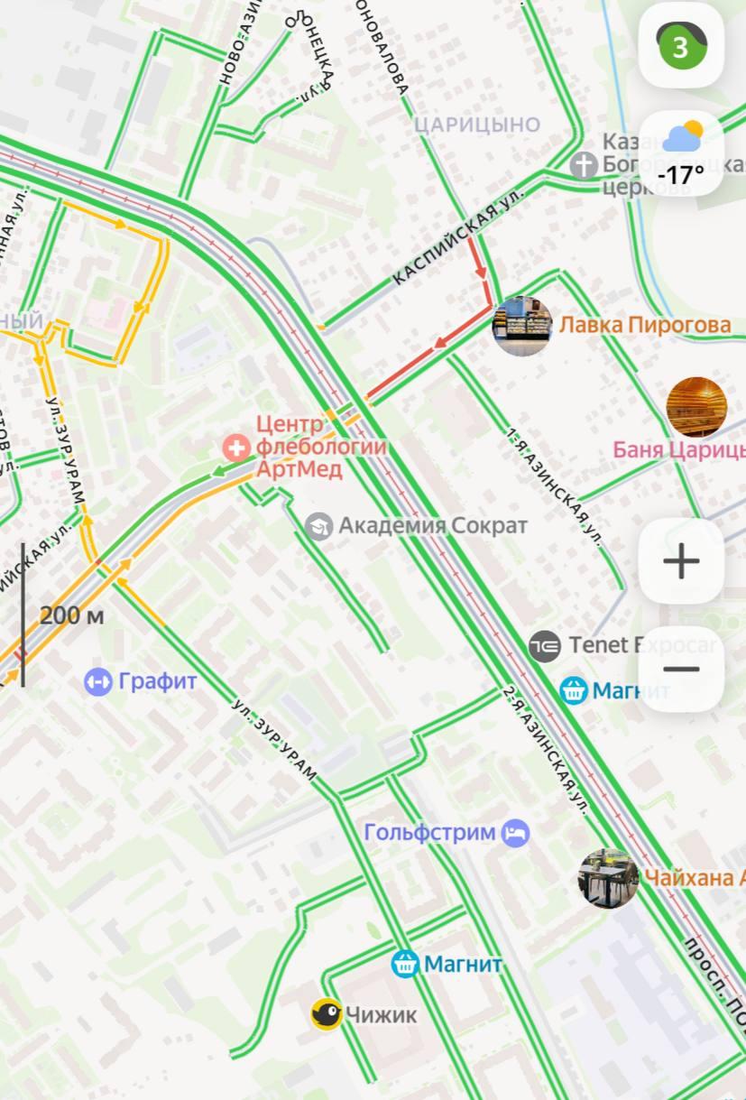 Согласно данным карт, движение в направлении улицы Арбузова полностью парализовано.