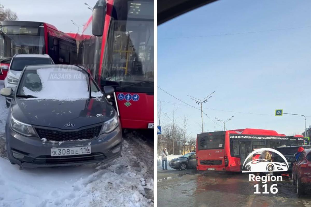 Два автобуса столкнулись в Казани, движение на Губкина парализовано