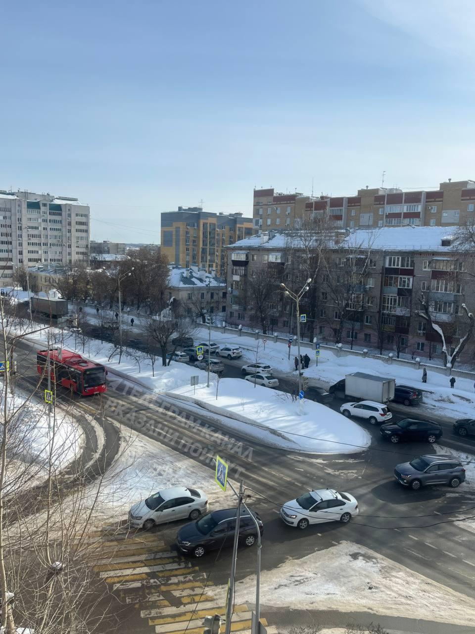 Два автобуса столкнулись на пересечении улиц Губкина и Коновалова в Казани, спровоцировав масштабную пробку.