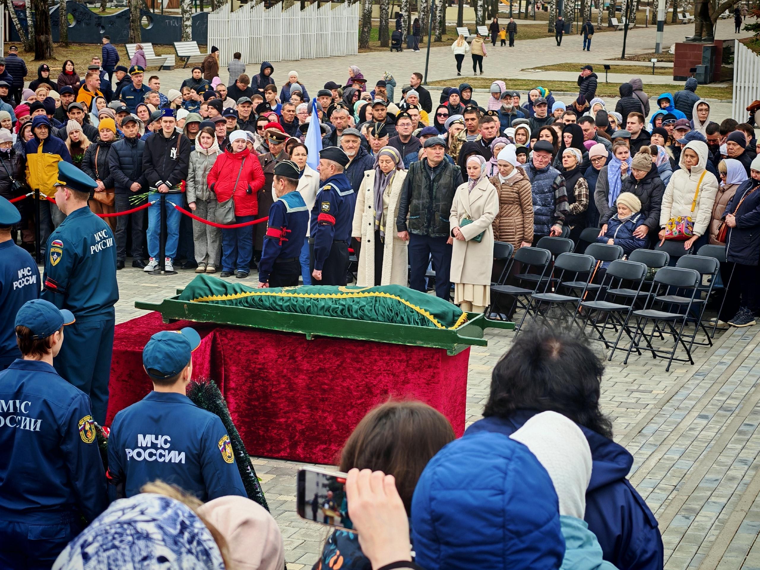 Церемония прощания с 27-летним пожарным Маратом Назиповым прошла в Нижнекамске 4 апреля на площади у Дома народного творчества.