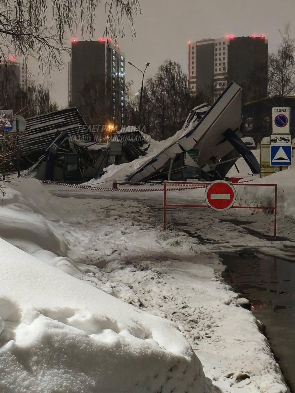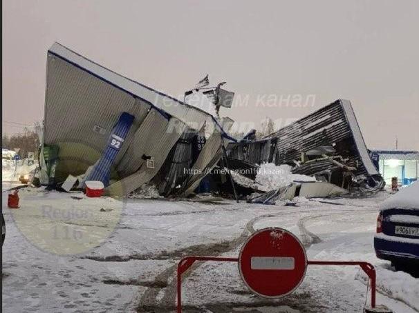 Крыша АЗС в Казани обрушилась от снега: штраф компании