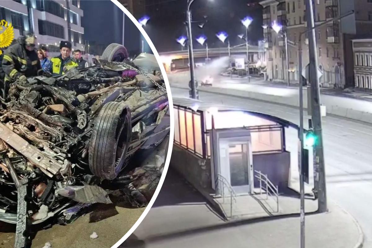 На записи видно, как Lexus, мчавшийся со стороны Петербургской улицы, на высокой скорости врезается в разделительный барьер, отлетает на несколько метров и переворачивается в воздухе.