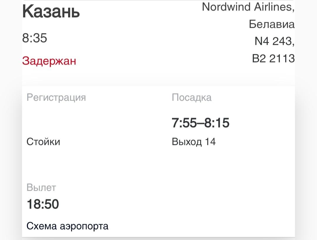 Мужчина купил билет на рейс авиакомпании Nordwind Airlines, запланированный на 23 марта на 8:35. За последние несколько часов время вылета меняли пять раз.
